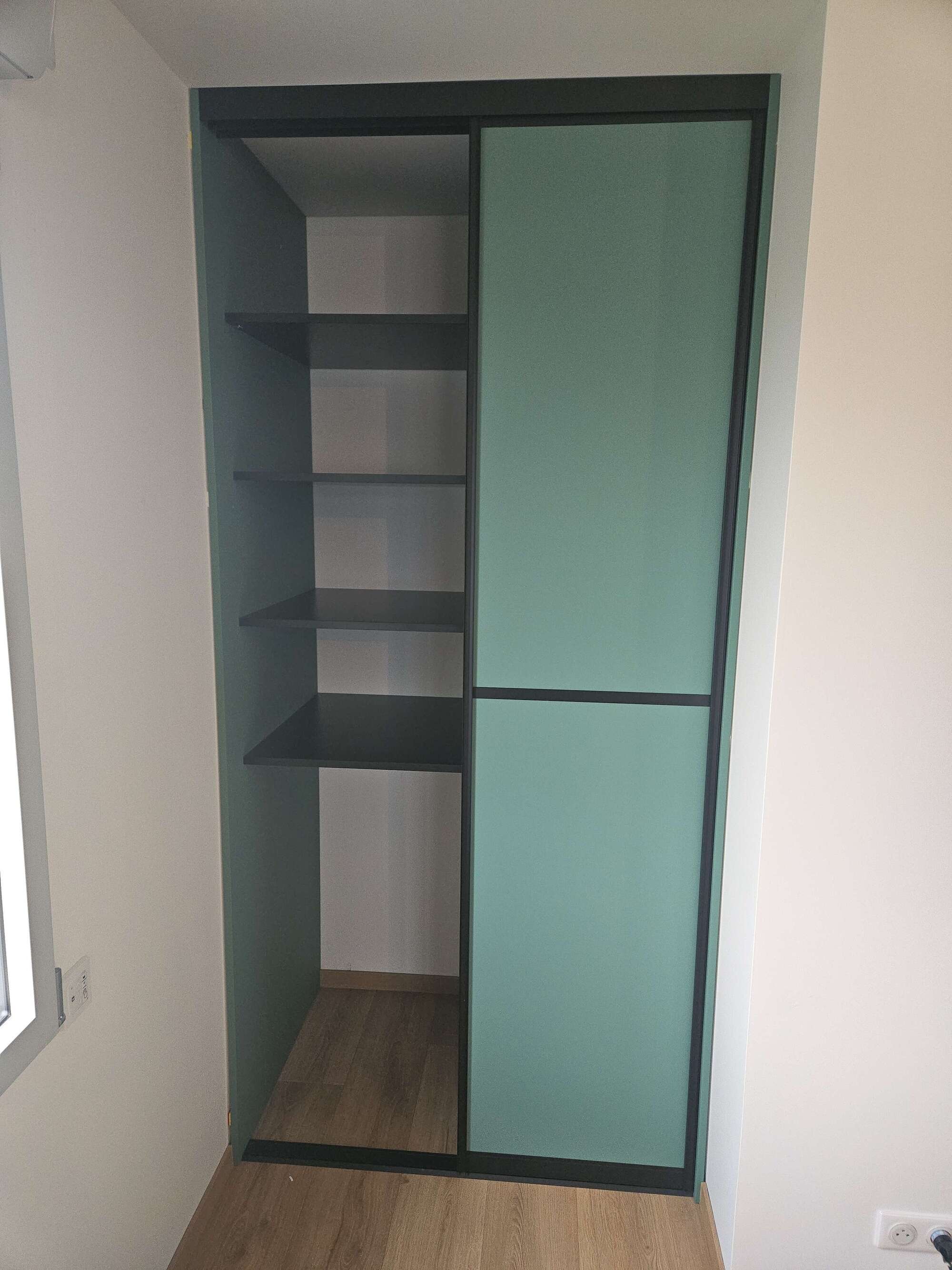 realisation de dressings colorés, tiroirs, penderies, et portes coulissantes, aménagement total de l'espace