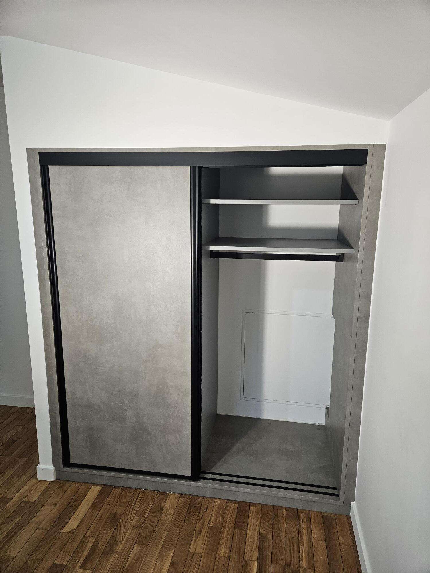dressing 3 vantaux aspect bois et béton foncé